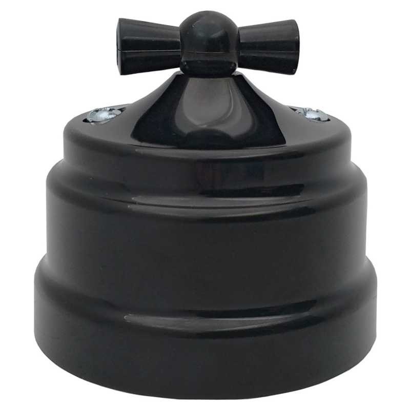 Ретро выключатель поворотный 2х-клавишный, пластик, черный, Bylectrica А5 10-2292 черный. Для установки на ровную поверхность стены и специальные пластиковые подложки подложки.