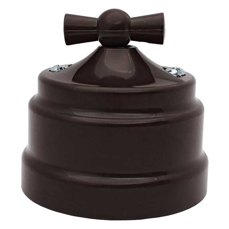 Ретро выключатель поворотный, проходной 1-клавишный, пластик, шоколад, Bylectrica А6 10-2296 шоколад