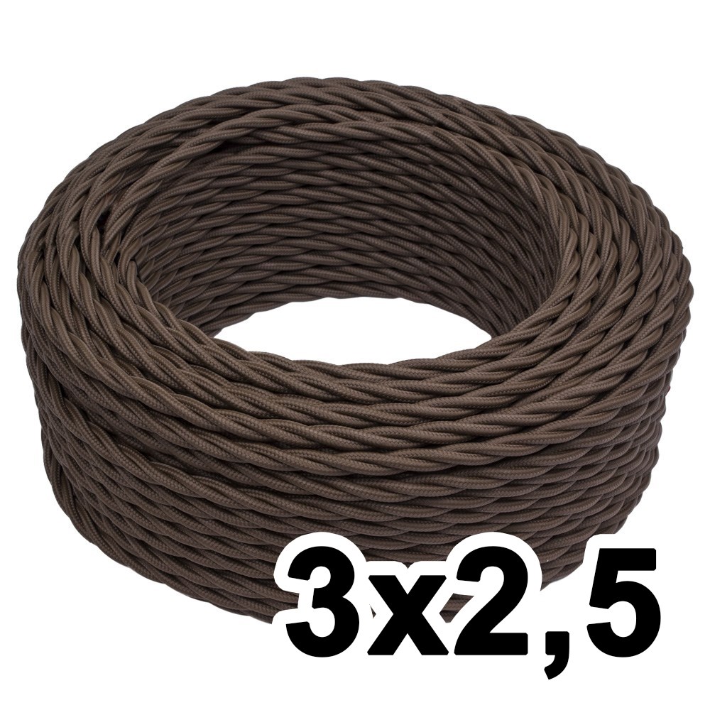 Витой провод трехжильный, 3х2.5, 220В, 20м, коричневый, Jantera, JTW.732.TM02.020